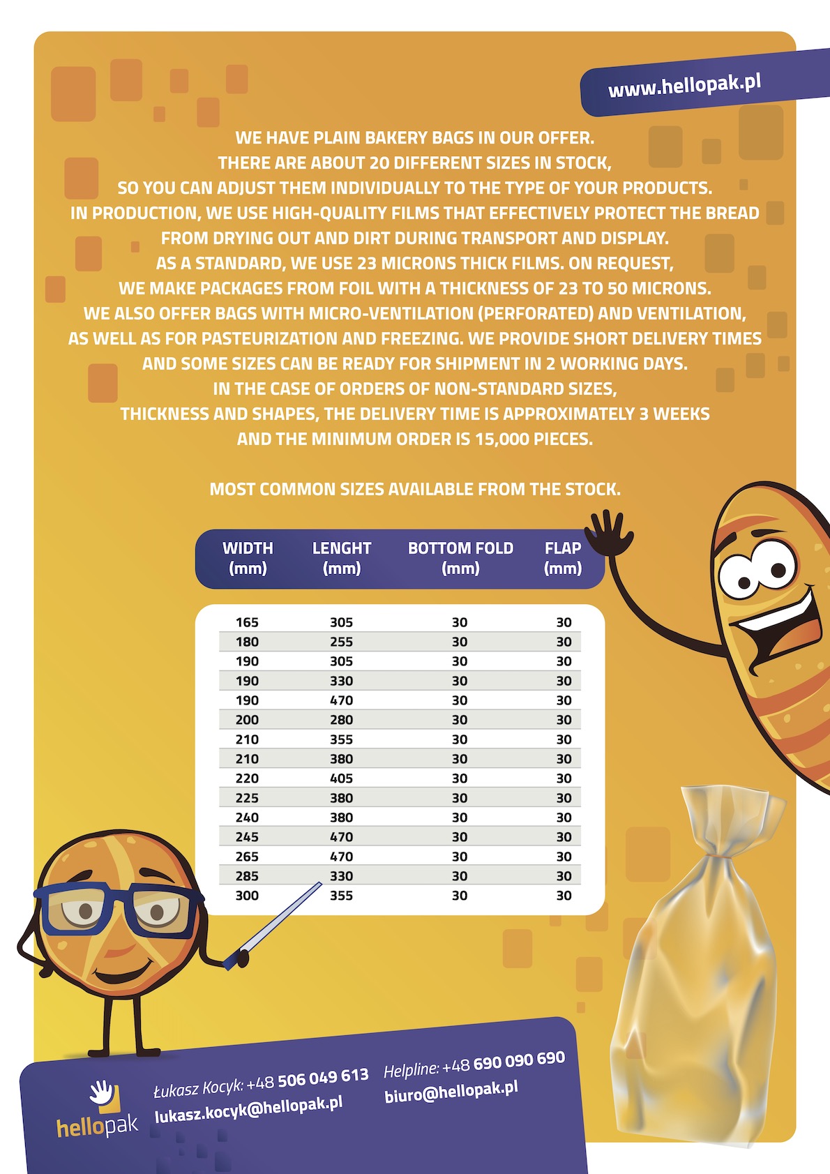 We have unprinted bags available in a permanent offer. These are the most versatile breadstuff bags, which can be used for any type of bakery product and completed with paper labels or stickers.